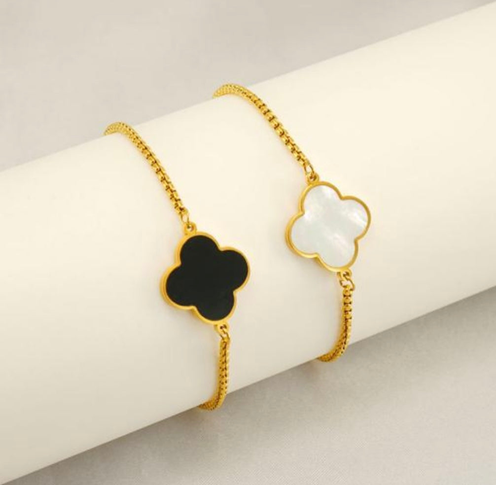 This charming bracelet brings timeless elegance and a touch of luck to your jewelry collection. The iconic four-leaf clover design is both meaningful and stylish, while the adjustable slider makes it effortless to achieve the perfect fit. Available in classic black or pristine white enamel, you can choose the color that best suits your style or collect both for versatile layering options.